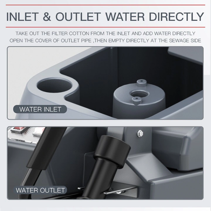 Bình chứa nước sạch và nước bẩn: Xe được trang bị hai thùng chứa nước riêng biệt: bình chứa nước sạch dung tích 50 L và bình chứa nước bẩn 55 L. Thiết kế này giúp quá trình làm sạch liên tục mà không cần dừng lại nhiều lần để tiếp nước, tiết kiệm thời gian và công sức cho người vận hành.