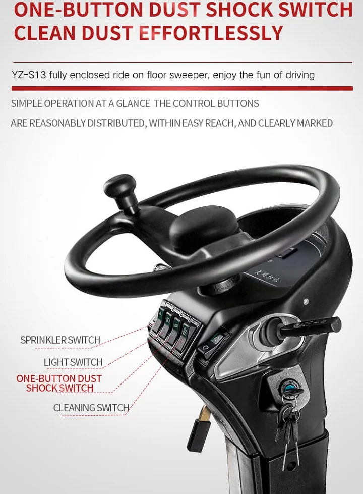 Xe quét rác ngồi lái S13 là dòng sản phẩm cao cấp của thương hiệu Yangzi, được thiết kế để phục vụ công tác làm sạch ở những khu vực có diện tích lớn như nhà máy, khu công nghiệp, bãi đậu xe, và đường phố. Với khả năng làm sạch diện tích rộng, xe có thể quét đến 18.000 m²/giờ, đảm bảo hiệu quả tối đa.