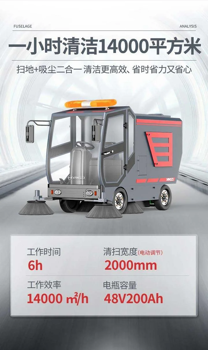 - Bề rộng làm sạch 2000 mm, đảm bảo hiệu quả làm sạch trên các tuyến đường và khu vực rộng lớn.