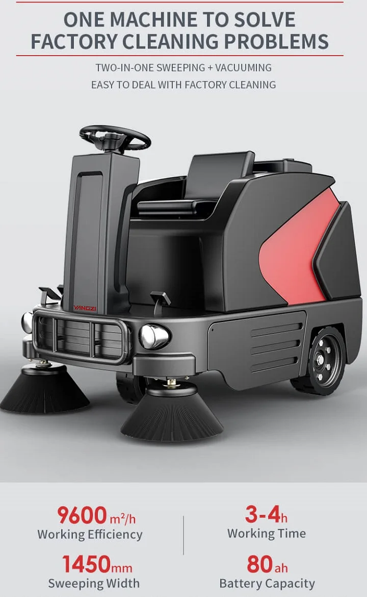 Xe quét rác ngồi lái S6 là dòng sản phẩm cao cấp của thương hiệu Yangzi, được thiết kế để phục vụ công tác làm sạch ở những khu vực có diện tích lớn như nhà máy, khu công nghiệp, bãi đậu xe, và đường phố. Với khả năng làm sạch diện tích rộng, xe có thể quét đến 9.600 m²/giờ, đảm bảo hiệu quả tối đa.
