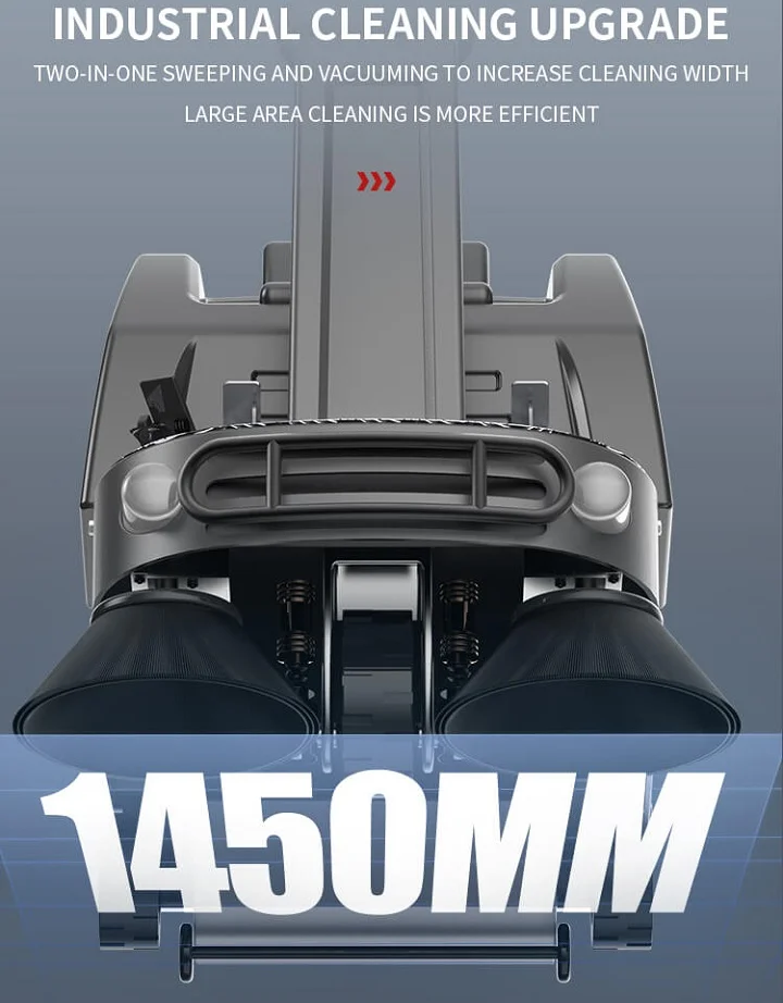 - Bề rộng làm sạch 1450 mm, đảm bảo hiệu quả làm sạch trên các tuyến đường và khu vực rộng lớn.