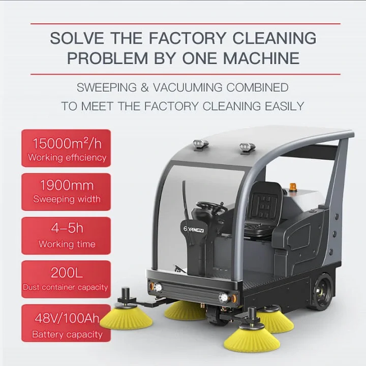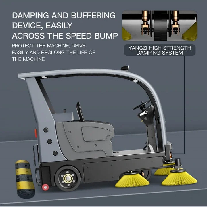 Xe quét rác ngồi lái S9 là dòng sản phẩm cao cấp của thương hiệu Yangzi, được thiết kế để phục vụ công tác làm sạch ở những khu vực có diện tích lớn như nhà máy, khu công nghiệp, bãi đậu xe, và đường phố. Với khả năng làm sạch diện tích rộng, xe có thể quét đến 15.000 m²/giờ, đảm bảo hiệu quả tối đa.